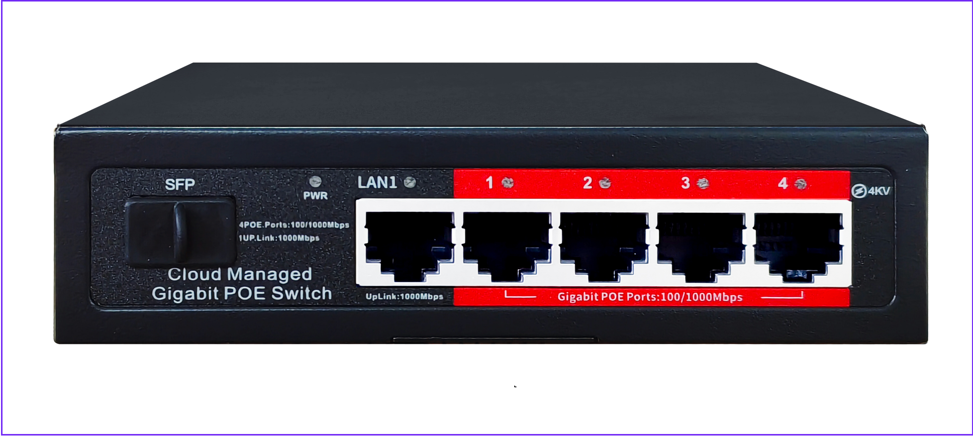 4 POE GE Port+RJ45 GE+1.25G SFP Port, Bandwidth 12G, Cloud Managed Switch, POE Switch