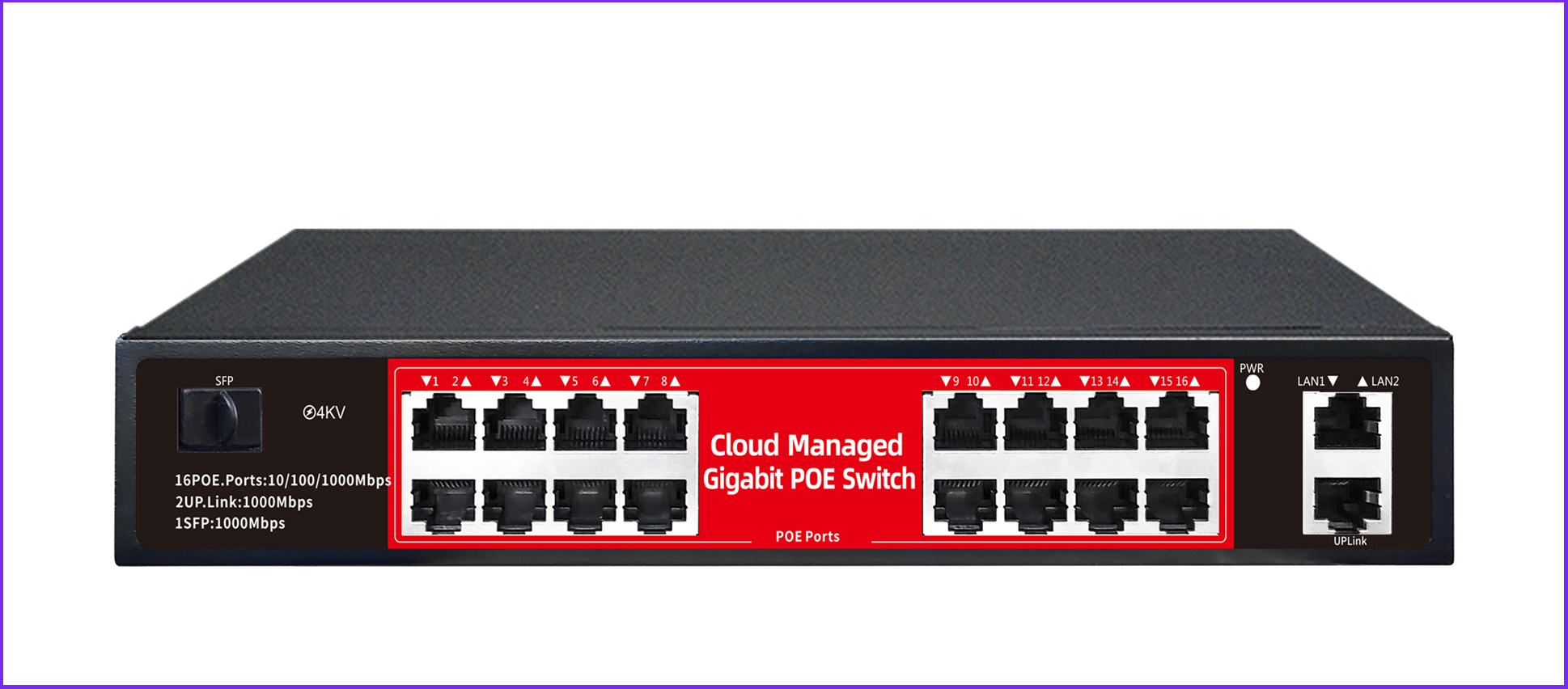 Provides 16 10/100/1000M adaptive RJ45 ports POE Switch, Cloud managed Switch
