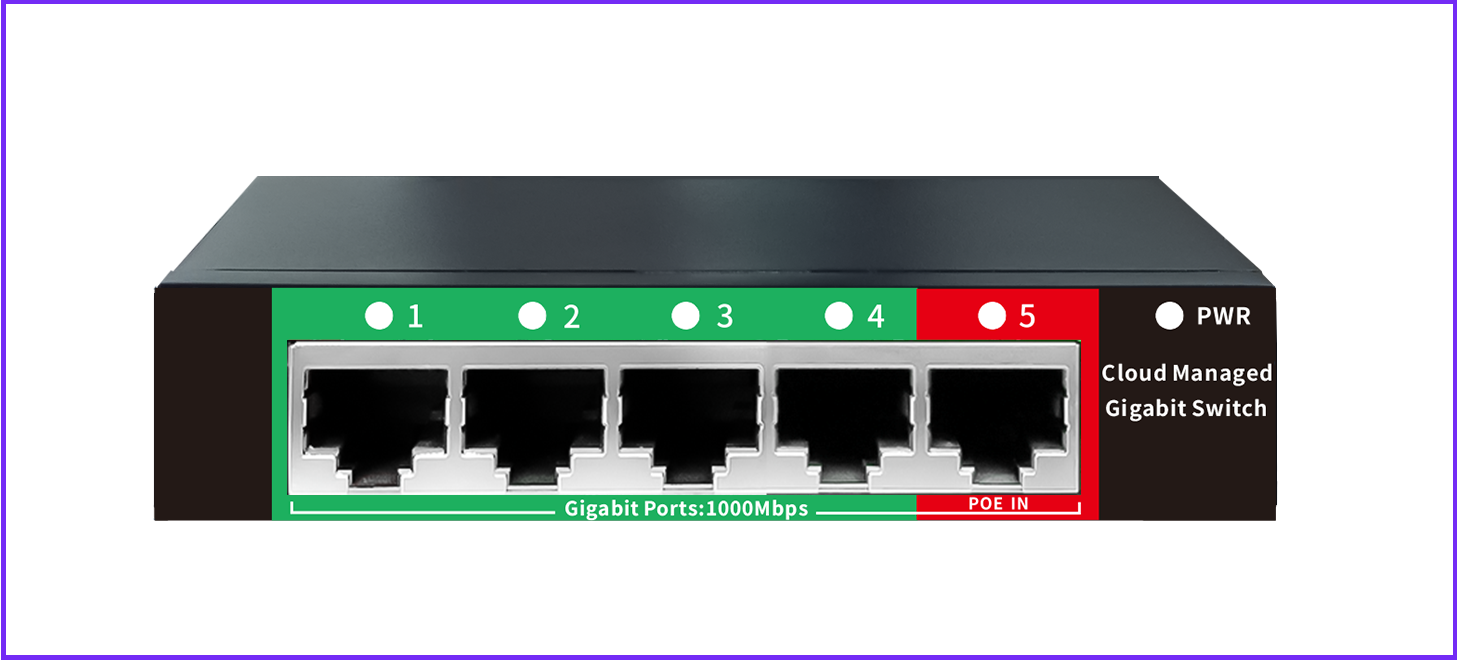 Provides 5 10/100/1000Base-T RJ45 ports, supports national standard 802.3 POE and non-standard48V-57V POE power receiving, Bandwidth 10G, POE Switch, Cloud managed Switch